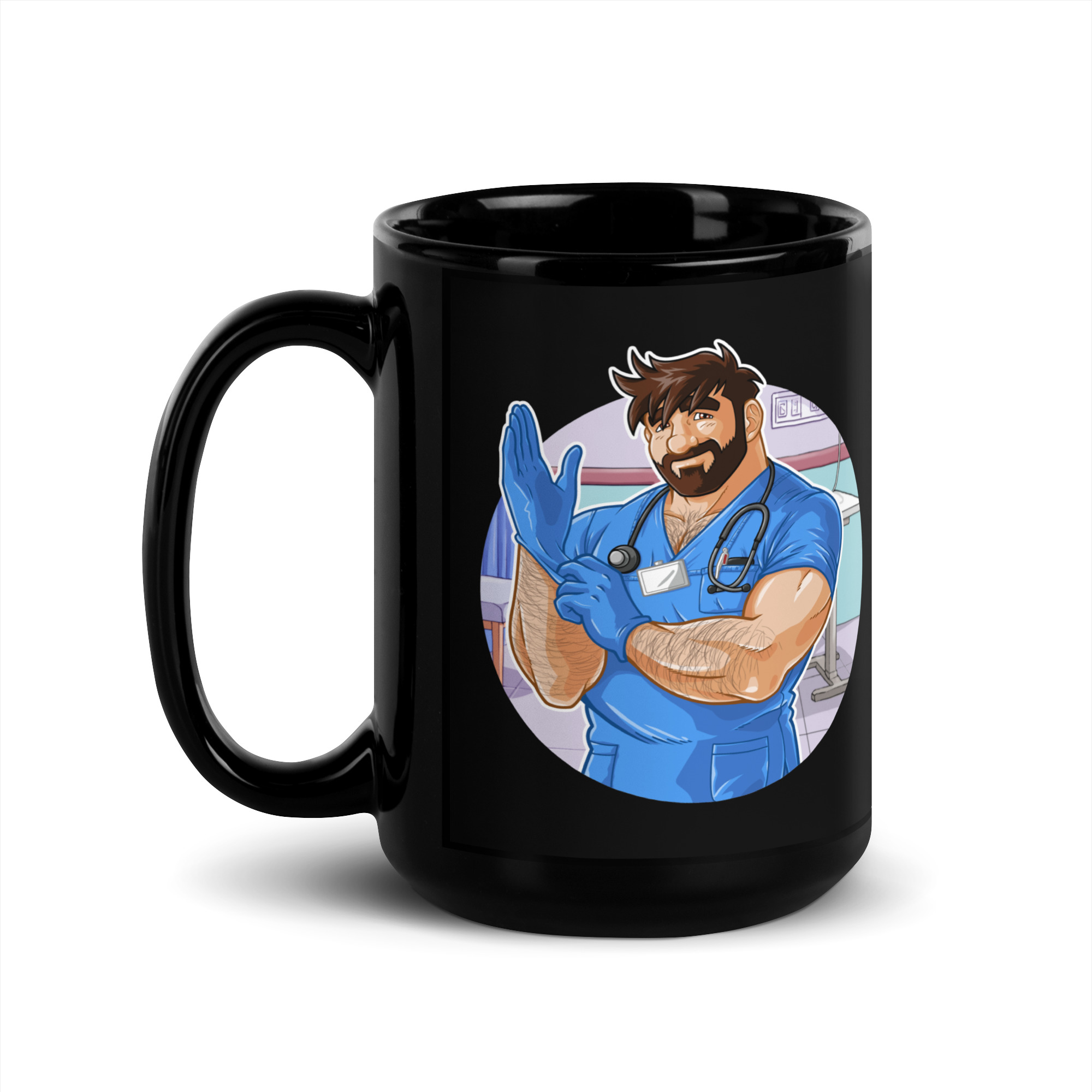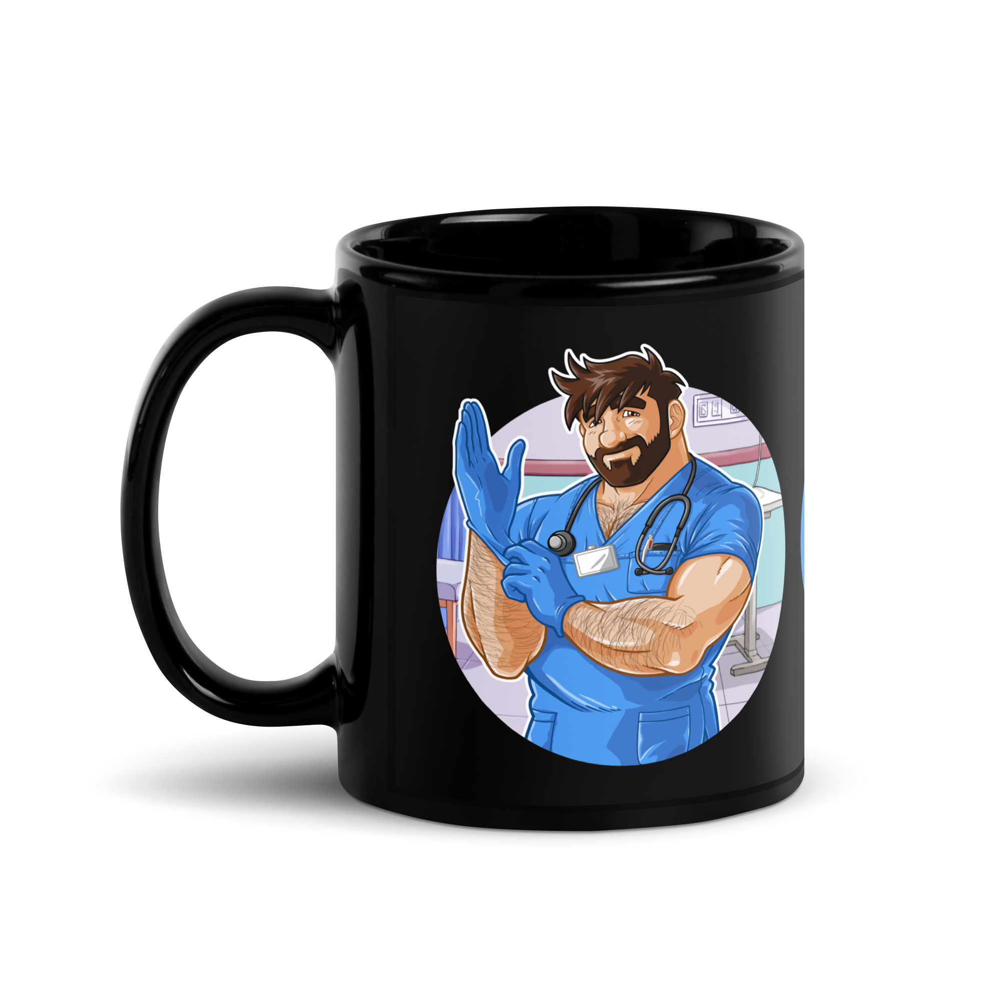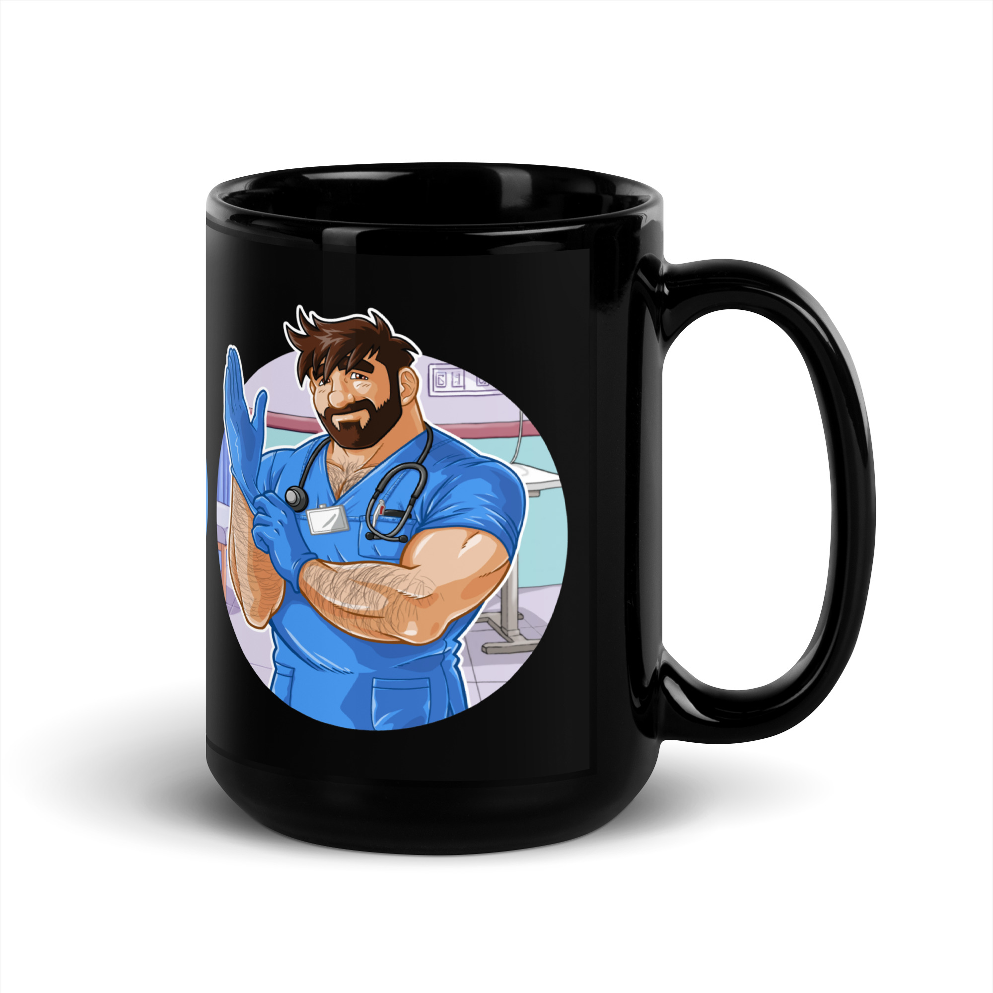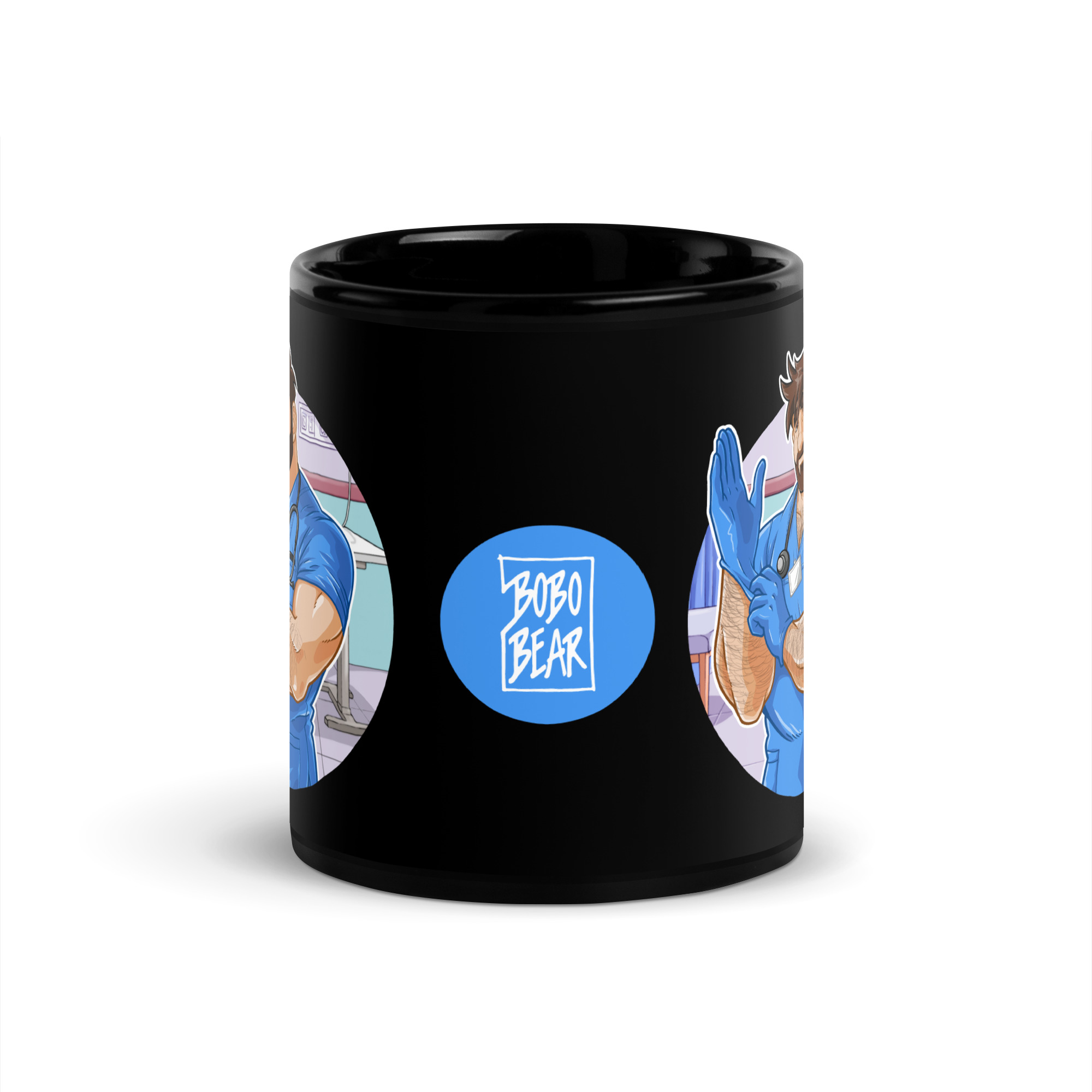 ADAM LIKES DOCTORS AND NURSES – Bobo Bear Black Glossy Mug